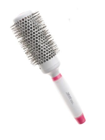 Escova térmica com filamentos de nylon, cabo em gel de silicone e tubo de turmalina.